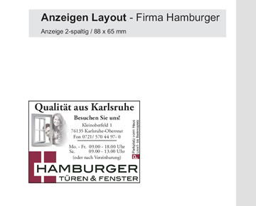 Anzeigen Layout für Firma Hamburger Türen & Fenster Gestaltung Druck / 2-spaltig / 4-farbig PDF-Druckvorlage